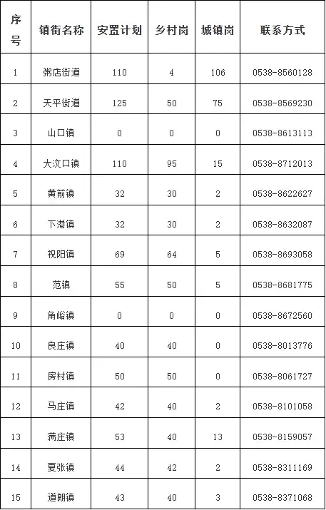 岱岳区各镇街安置城乡公益性岗位结合实际情况综合设岗,统一设置非营利性公共管理类、公共服务类、社会事业类、设施维护类、社会治理类等岗位。本次共计开发城乡公益性岗位805个(其中,乡村公益性岗位575个、城镇公益性岗位230个)。具体招聘计划及要求以各镇街实际招聘公告为准。