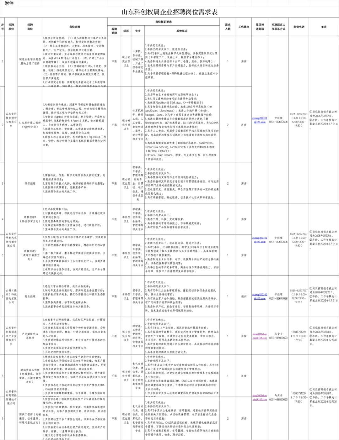 具体招聘岗位及要求详见附件1。